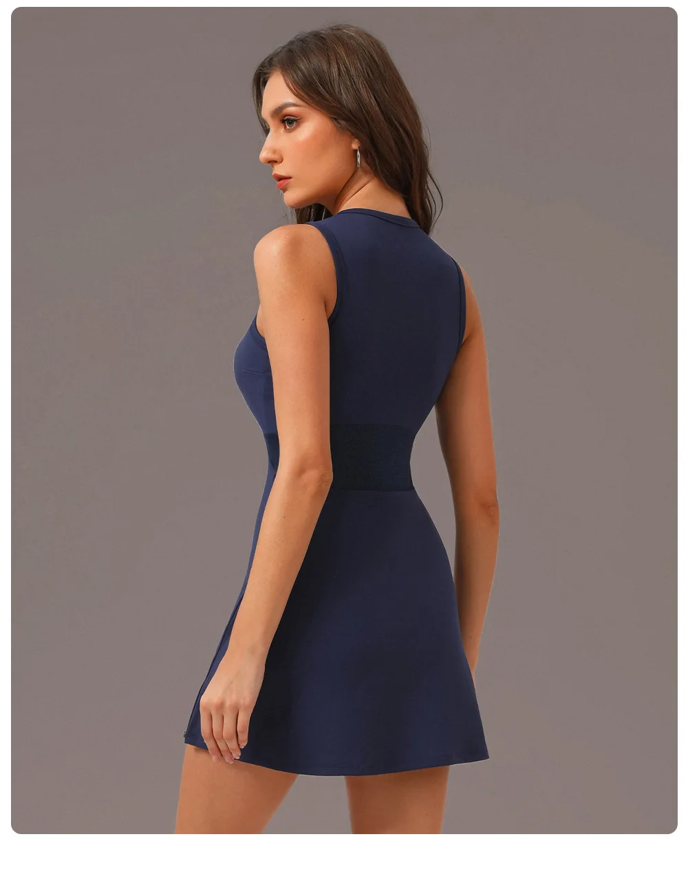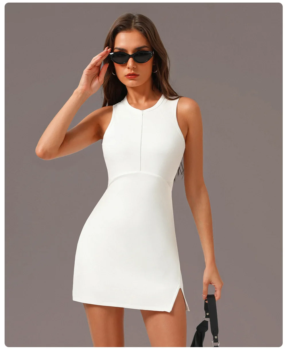 Active Zipper Tennis Dress with Shorts & Padded Support