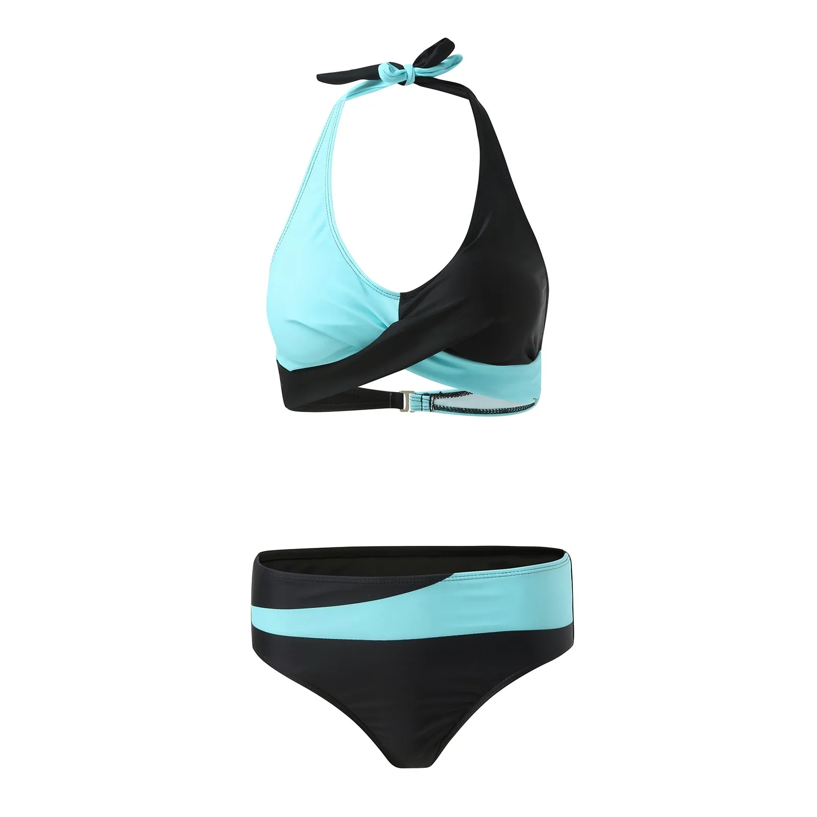 Adjustable front tie knot bikini top with a removable soft bra, padded, which makes you look slim and sexy. Curvy women adjust the tie on the chest for more comfortable wearing.
